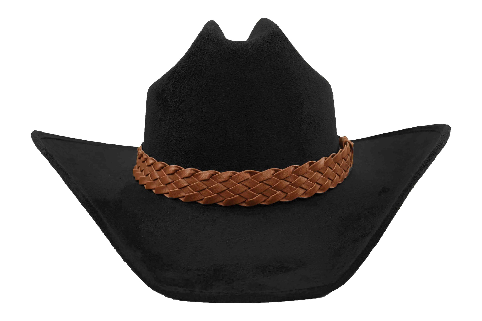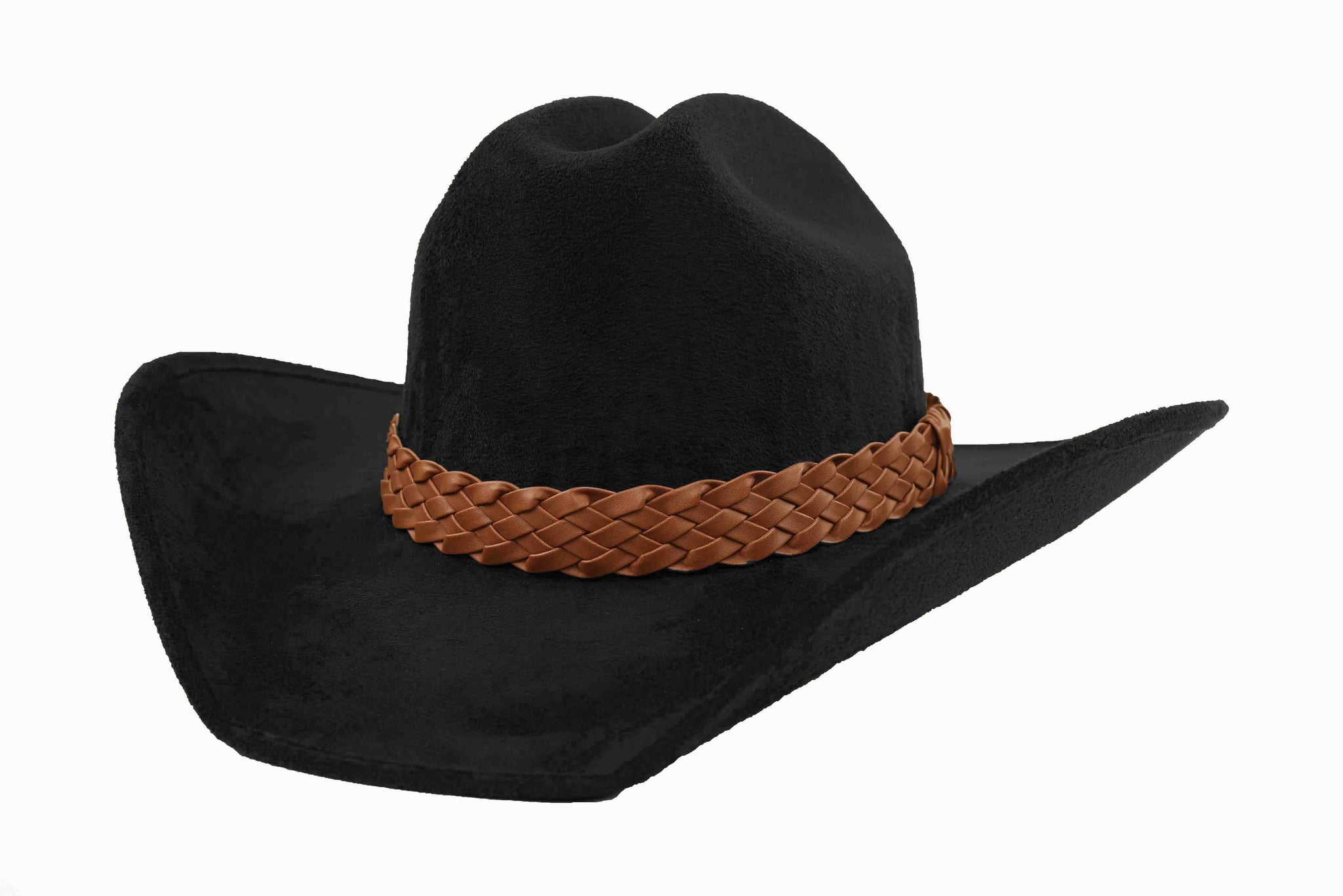 The Stallion suede western hat blends classic craftsmanship with contemporary allure. The structured crown and sleek brim are elevated by a polished tan braid that wraps the base, creating a perfect balance of western heritage and high-fashion artistry.